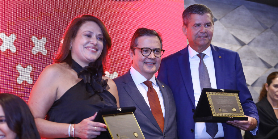 Encaminhando para o encerramento da solenidade, o presidente do IRB no período de 2022 a 2025, Edilberto Pontes, foi homenageado pelo recém-empossado presidente, Inaldo Araújo, em reconhecimento ao trabalho realizado.