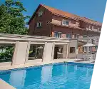 Hotel com ambiente tranquilo e salas corporativas para reuniões.