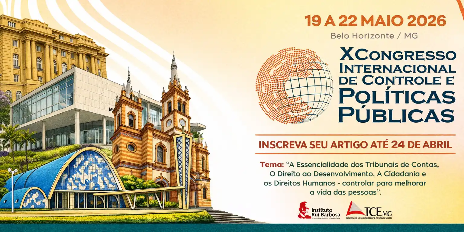 Pesquisadores, servidores públicos e profissionais interessados em controle externo e políticas públicas já podem inscrever trabalhos para o X Congresso Internacional de Controle e Políticas Públicas, promovido pelo Instituto Rui Barbosa (IRB). As submissões estão abertas até 24 de abril de 2026 e devem ser feitas pelo sistema OJS, conforme regras disponíveis no edital. O evento será realizado de 19 a 22 de maio de 2026, em Belo Horizonte (MG), no The One Eventos.