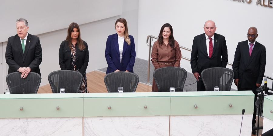 O Tribunal de Contas do Estado do Ceará (TCE-CE) realizou, na manhã desta terça-feira (14/10), sessão solene em comemoração aos 90 anos de sua fundação. Durante a cerimônia, foi concedida, in memoriam, a Medalha Mérito de Contas do TCE-CE ao Conselheiro Alexandre Figueiredo, falecido em 16 de junho de 2024. Na ocasião, o plenário da Corte passou oficialmente a denominar-se “Plenário Conselheiro Alexandre Figueiredo”, em homenagem ao ex-Conselheiro, decisão aprovada por unanimidade pelo Colegiado.