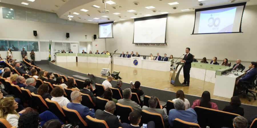“São nove décadas de uma instituição que é, antes de tudo, um patrimônio republicano do povo cearense. Noventa anos não são apenas um número, são história de serviço público com compromisso renovado com a constituição, com a ética e com resultado que transforma a vida das pessoas. Nós atravessamos mudanças constitucionais, ciclos econômicos, duas interrupções de nossas atividades, transformações tecnológicas e desafios sociais de grande envergadura. […] Diante deste cenário, renovamos aqui quatro compromissos assumidos: com a integridade, com a inovação responsável, com o resultado para as pessoas e com as futuras gerações.”
