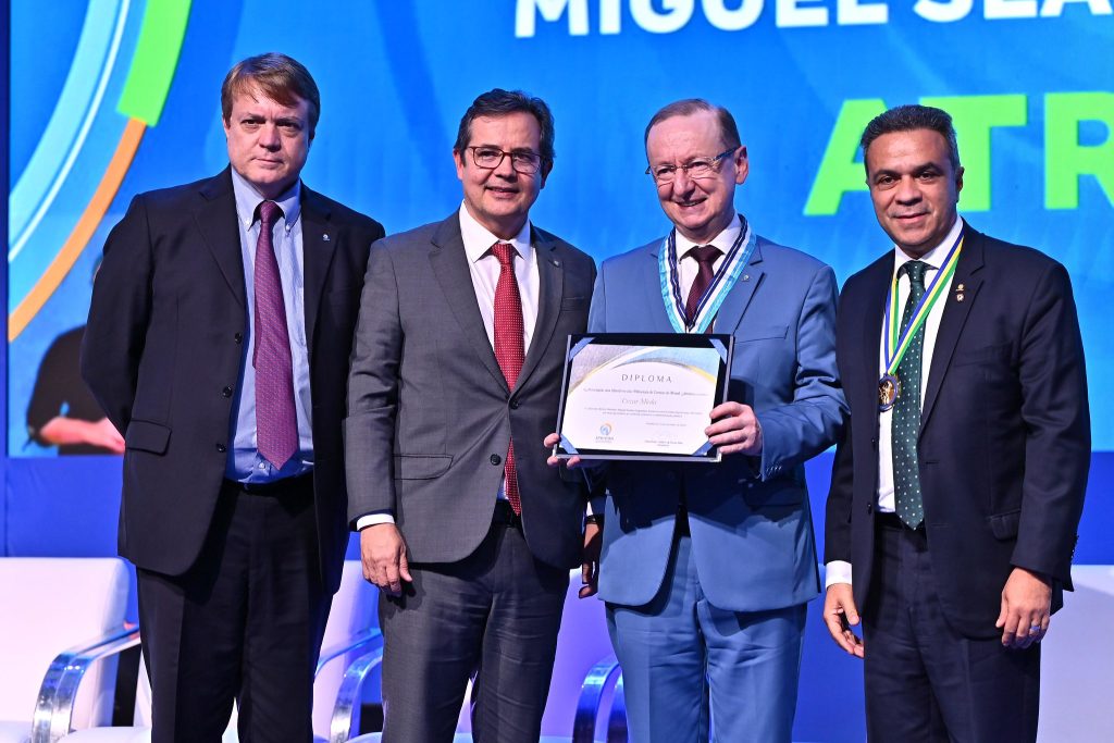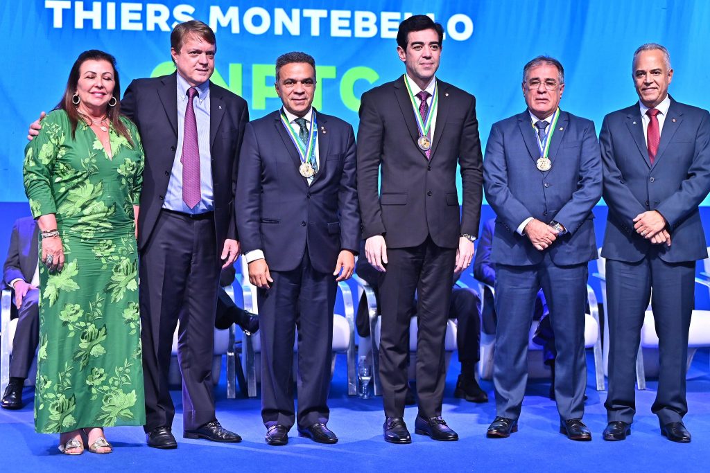 O Presidente do CNPTC, Conselheiro Luiz Guaraná, concedeu a outorga da Medalha Conselheiro Thiers Montebello ao Ministro Bruno Dantas, e aos Conselheiros Edilson Silva e Joaquim de Castro Neto.