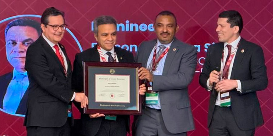 O presidente da Associação dos Membros dos Tribunais de Contas do Brasil (Atricon), Edilson de Sousa Silva, recebeu nesta terça-feira (7.04), o título Doctor of Science in Legal Studies, Honoris Causa, concedido pela Washington & Lincoln University. A honraria foi entregue durante o primeiro dia do Waln University Conference, realizado em Orlando.